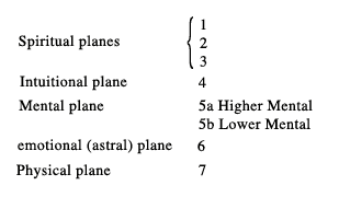 It is so important for our purpose to have as clear an idea as we can of these seven planes that a table will help us, especially for future reference when considering other subjects. But it must be remembered that the higher planes penetrate the lower; they are not in nature arranged one above the other as they are on paper. They are: